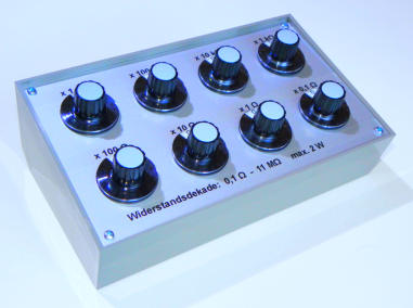 Widerstandsdekaden sind nützliche Hilfsmittel im Labor, mit denen sich, ähnlich einem Potentiometer, Widerstandswerte einstellen lassen. Bei der Dekade sind jedoch definierte Werte darstellbar, die sich meist in Zehnerpotenzen variieren lassen und deren Wert direkt ablesbar angezeigt wird. Solche Dekaden sind, je nach Ausstattung (Anzahl der Bereiche, Belastbarkeit und Genauigkeit der verwendeten Widerstände etc.), recht teuer. Dabei ist der Selbstbau relativ einfach, und die ausführliche Anleitung zum Download zeigt, wie es geht.